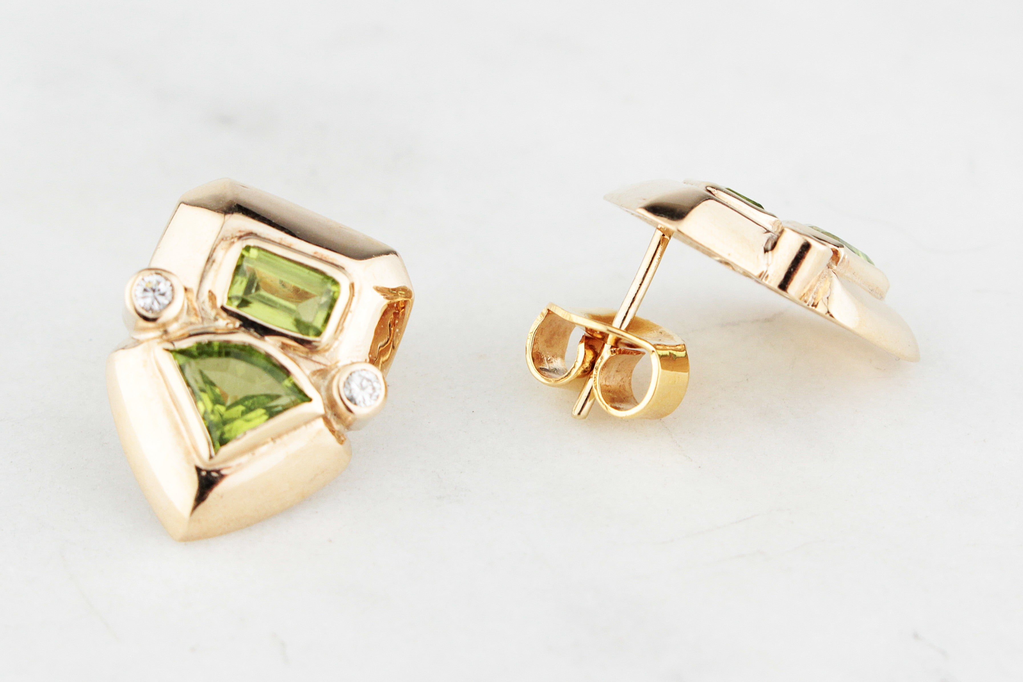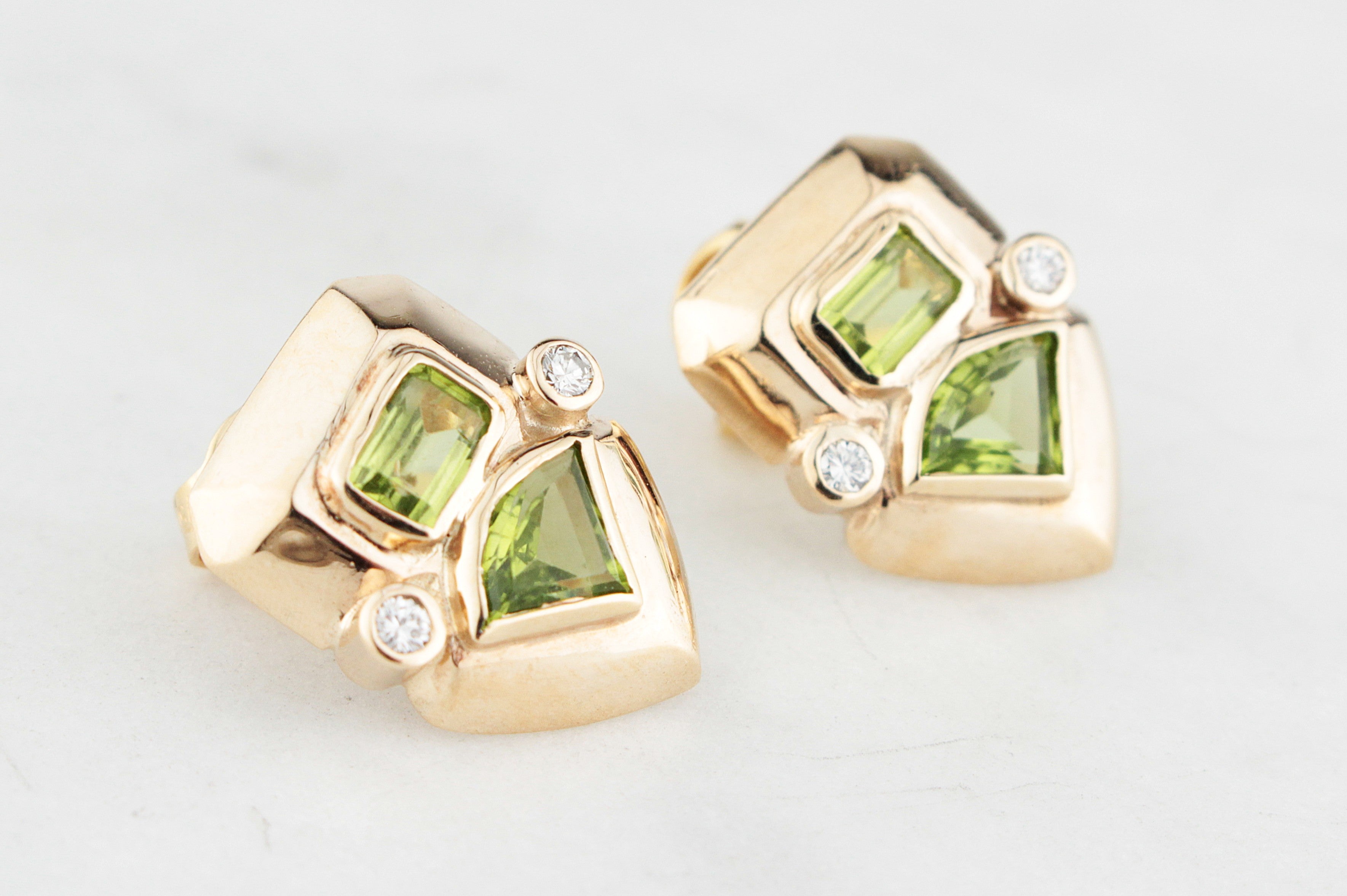 CONDITION: In excellent vintage condition, the Peridot and Diamonds are secure and unabraded, butterfly backs working as intended, no issues to note