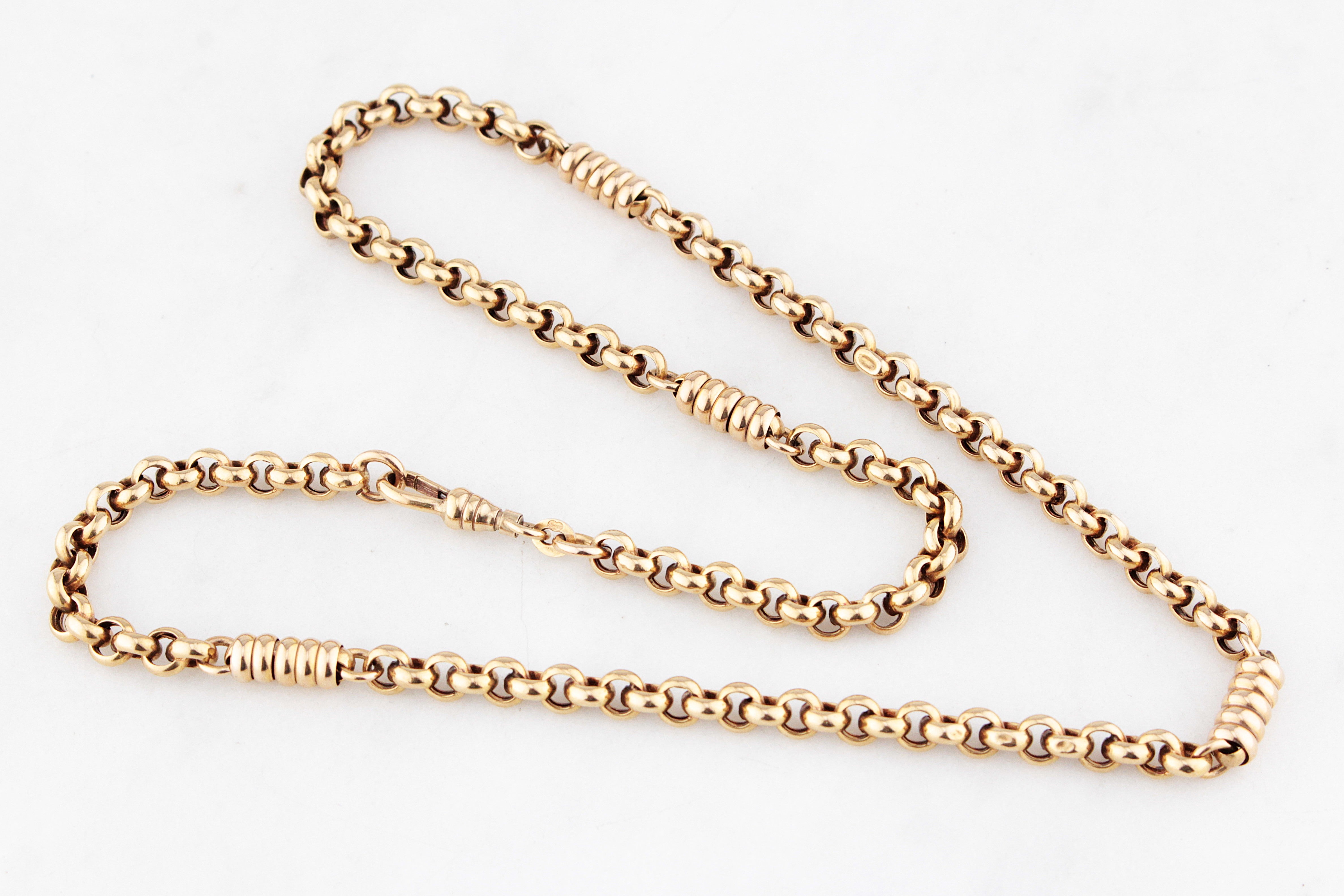 A beautifully made vintage Italian gold chain, crafted by the renowned Unoaerre and full of gorgeous detail. The classic roll link design is elevated with sculptural coiled stations spaced along the length, adding texture and interest without overpowering the clean lines of the chain.