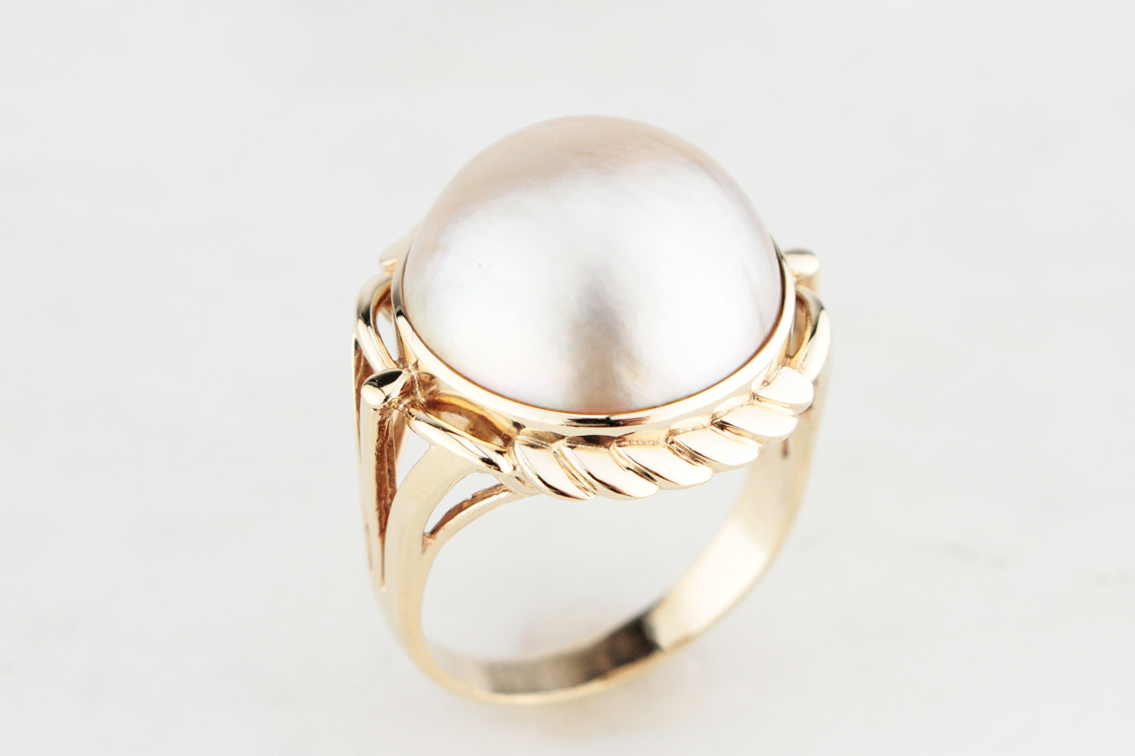 VINTAGE MABE PEARL STATEMENT RING 9ct GOLD