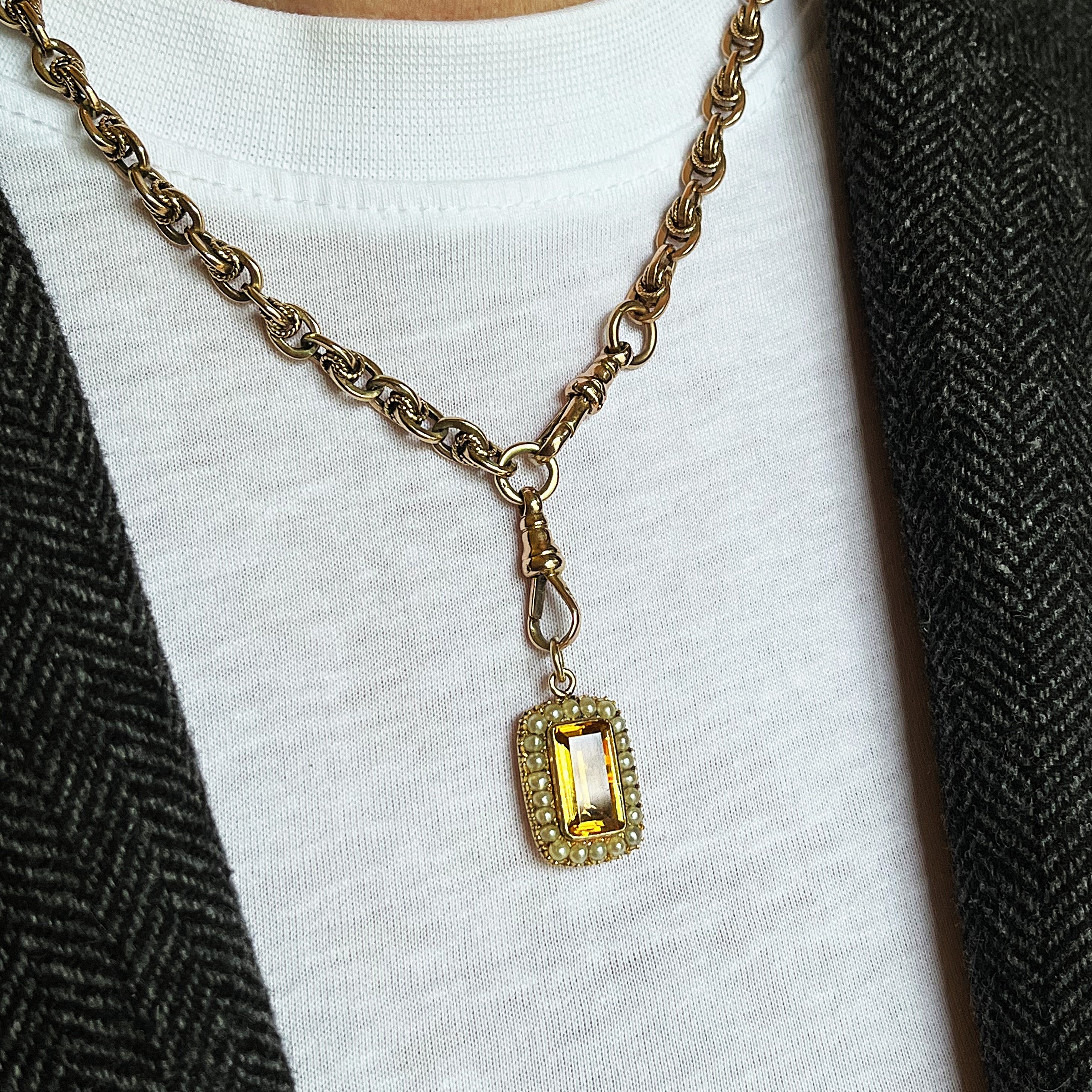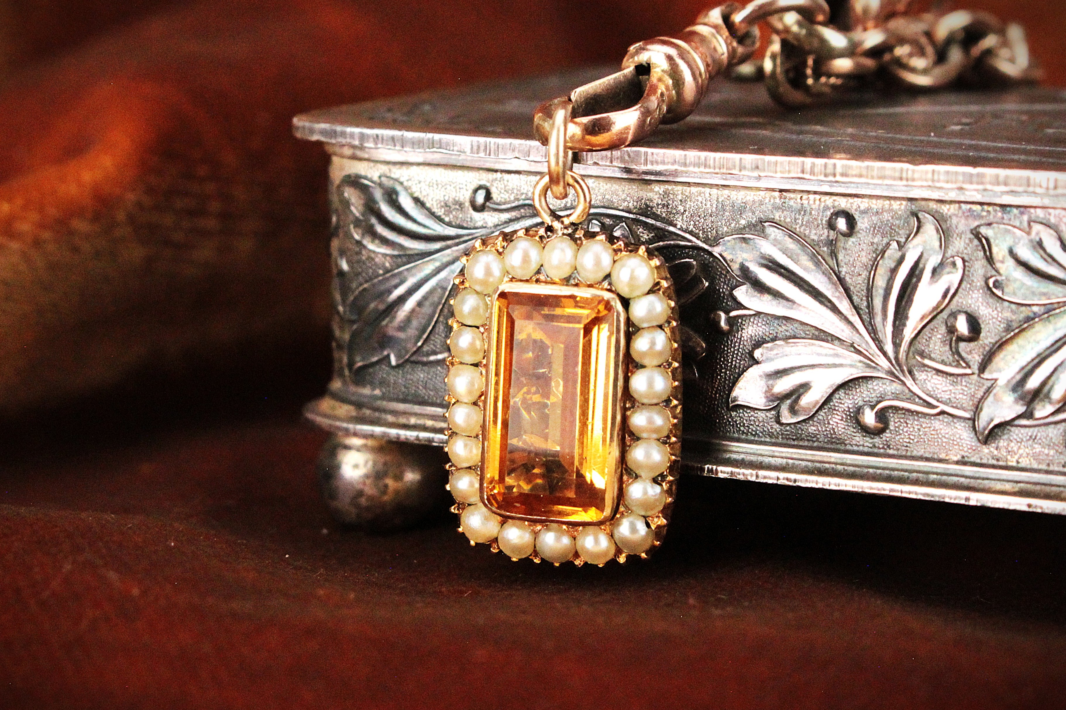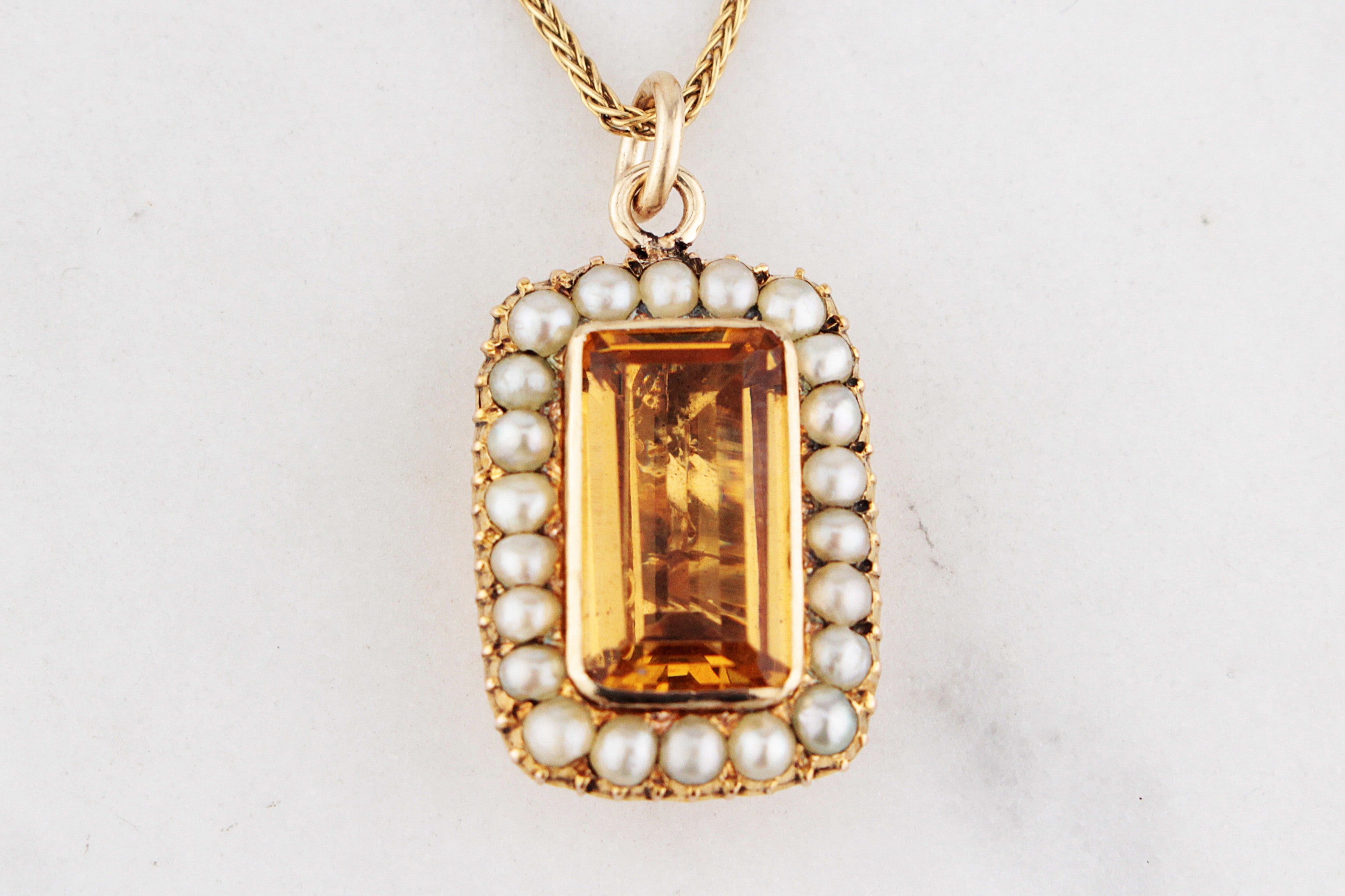 ANTIQUE EDWARDIAN CITRINE & SEED PEARL PENDANT 9ct GOLD