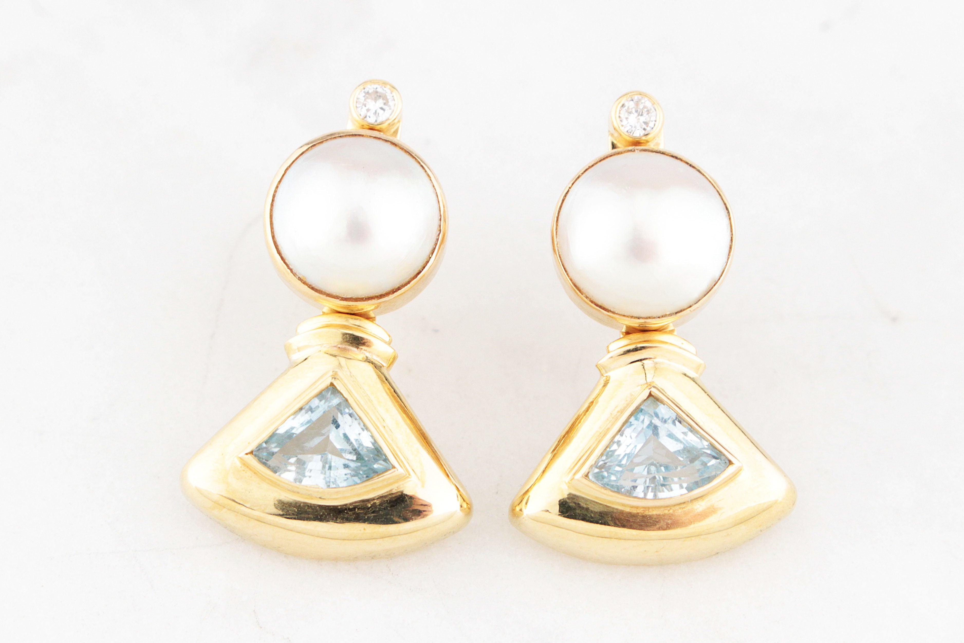 RETRO CONVERTIBLE TOPAZ, DIAMOND & PEARL EARRINGS 9ct GOLD