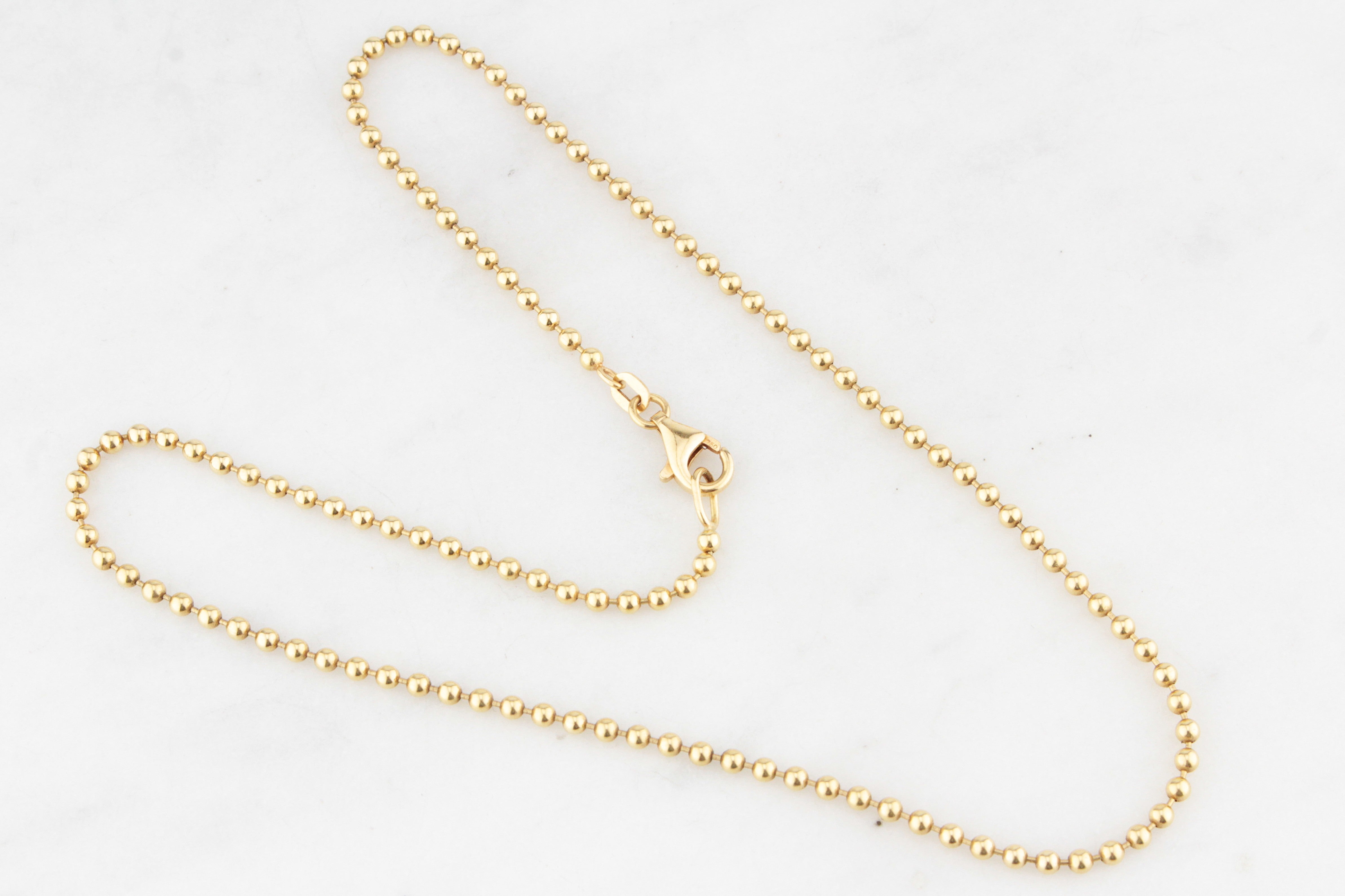 Smooth, tactile, and oh-so-luxurious, this vintage ball link chain in solid 18ct gold is a minimalist’s dream. The rounded links catch the light beautifully while offering a soft, fluid drape. Wear it solo for a sleek statement or layer it with your favourite pendants for an elevated everyday look.