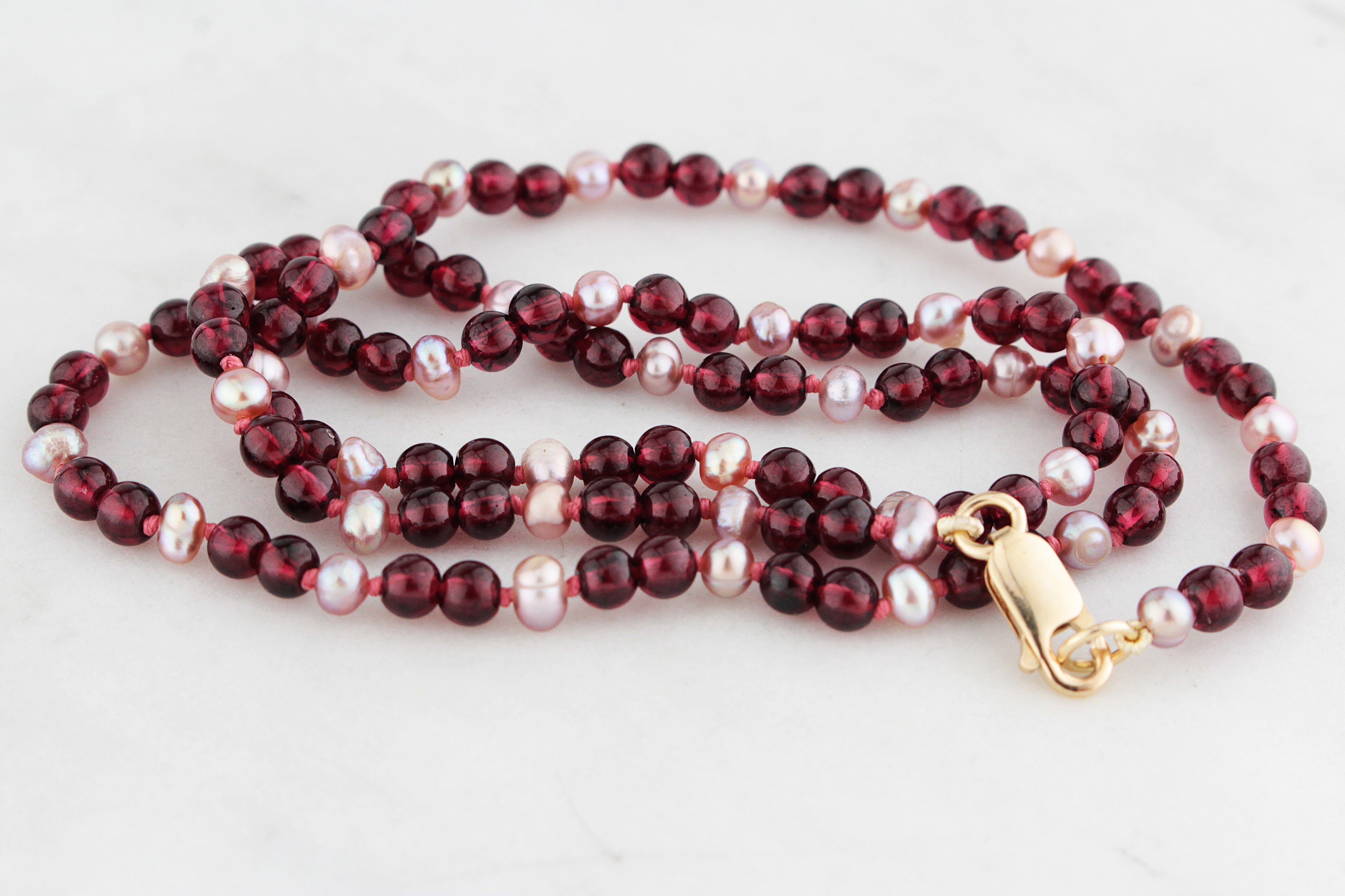 STONES: 4.25mm Garnet Beads, 3.50mm cultured semi-baroque pink freshwater Pearls